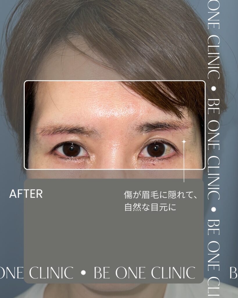 眉毛に隠れる位置で修正しました。(術後1ヶ月)